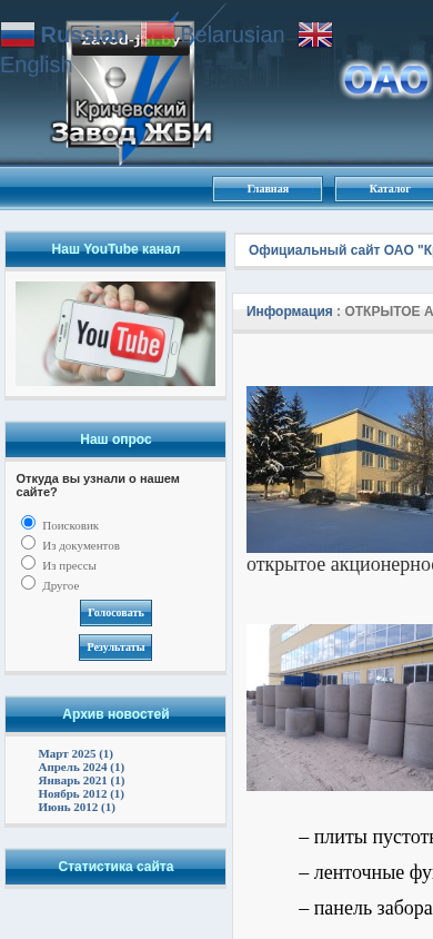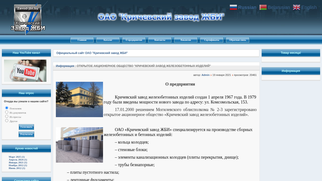 Официальный сайт ОАО "Кричевский завод ЖБИ"