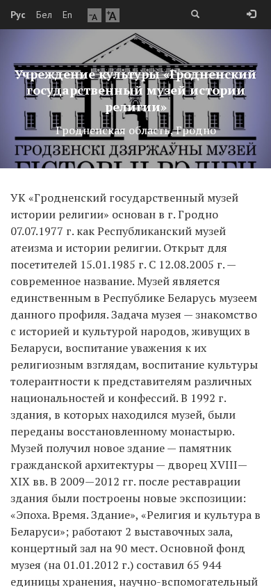 SEO-описание | Учреждение культуры «Гродненский государственный музей истории религии» — новости и афиша мероприятий, информация для посетителей, цены, экспозиция, коллекции, материалы для музейщиков. |