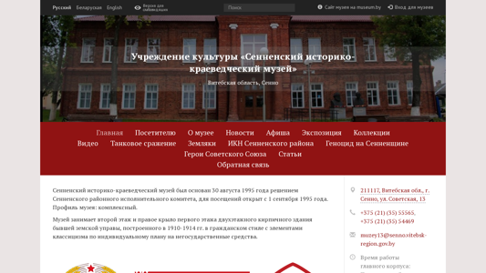 SEO-описание | Учреждение культуры «Сенненский историко-краеведческий музей» — новости и афиша мероприятий, информация для посетителей, цены, экспозиция, коллекции, материалы для музейщиков. |