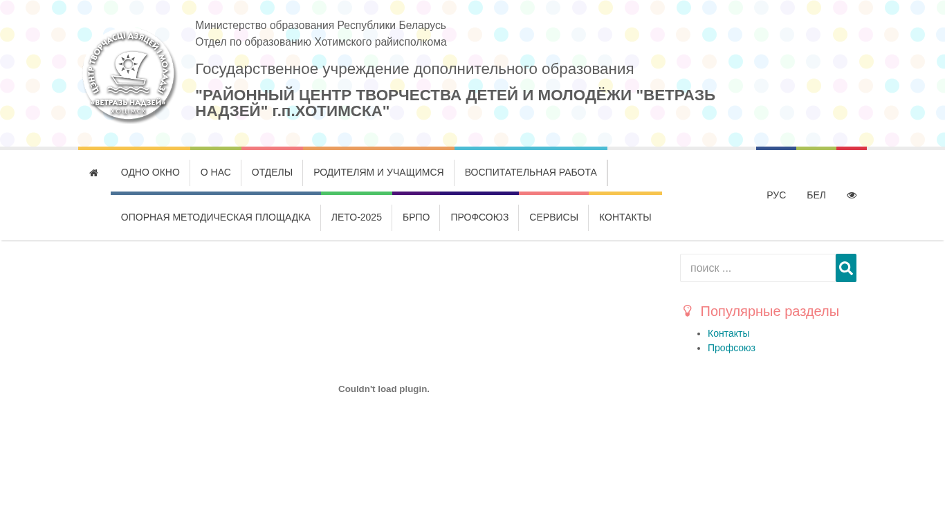 Название / Заголовок | Районный центр творчества детей и молодежи "Ветразь надзей" г.п. Хотимска |