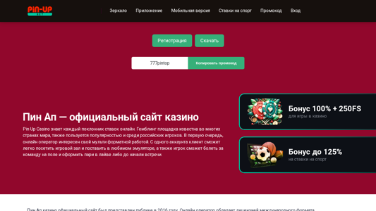 SEO-описание | Пин Ап казино предлагает огромный выбор игр и шанс заработать реальные деньги.💰 Получите бонус 120% + 250 FS после регистрации.🎰 Лучшие игровые автоматы, ставки на спорт, высокие шансы на победу и быстрые выплаты в казино ПинАп |