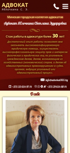 Ключевые слова | яблочкина светлана эдуардовна года принята члены минской городской коллегии адвокатов работаю адвокатом юридической консультации советского района минска стаж работы адвокатуре составляет год лицензия право осуществления адвокатской деятельности декабря краткие биографические |