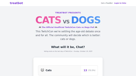 treatbot - The Official Unofficial Cats vs Dogs Poll | TwitchCon