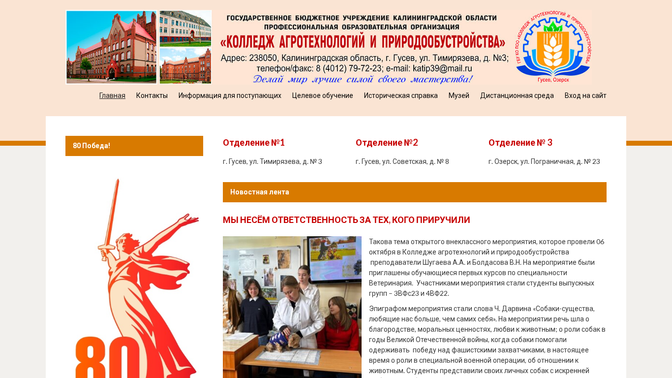 Название / Заголовок | ГБУ КО ПОО КОЛЛЕДЖ АГРОТЕХНОЛОГИЙ И ПРИРОДООБУСТРОЙСТВА - Учебное заведение Калининградской области |