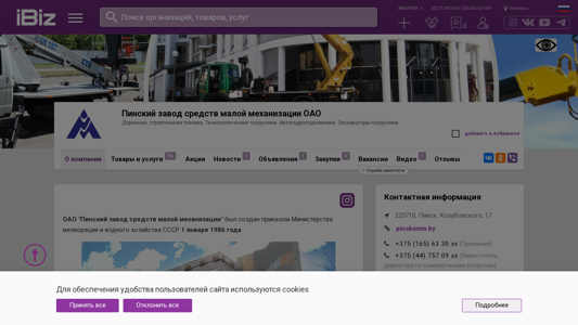 Название / Заголовок | Пинский завод средств малой механизации ОАО - Дорожная, строительная техника. Телескопические погрузчики. Автогидроподъемники. Экскаваторы-погрузчики. . 225710, Пинск, , Козубовского, 17 |