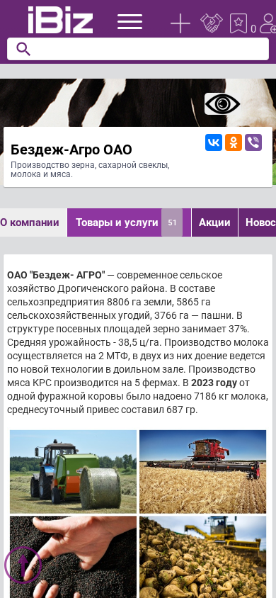 Название / Заголовок | Бездеж-Агро ОАО - Производство зерна, сахарной свеклы, молока и мяса.. 225848, , Бездеж аг., Гагарина, 9 |