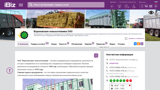 Название / Заголовок | Вороновская сельхозтехника ОАО - Производство специальных полуприцепов и платформ. Восстановление и капитальный ремонт прицепной сельскохозяйственной техники. Изготовление всего технологического оборудования животноводческих ферм. Транспортные услуги.. 231391, , Бояры д. |