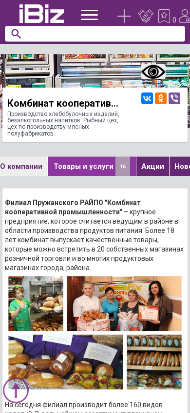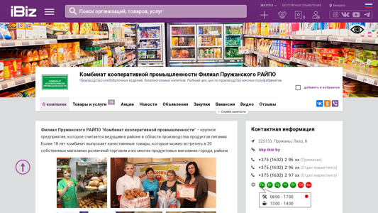 favicon Комбинат кооперативной промышленности Филиал Пружанского РАЙПО - Производство хлебобулочных изделий, безалкогольных напитков. Рыбный цех, цех по производству мясных полуфабрикатов.. 225133, Пружаны, , Лазо, 8