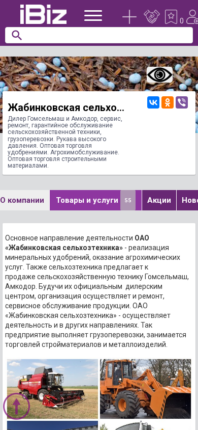 Название / Заголовок | Жабинковская сельхозтехника ОАО - Дилер Гомсельмаш и Амкодор, сервис, ремонт, гарантийное обслуживание сельскохозяйственной техники, грузоперевозки. Рукава высокого давления. Оптовая торговля удобрениями. Агрохимобслуживание. Оптовая торговля строительными материалами.. 225101, Жабинка, , Короткина, 7 |