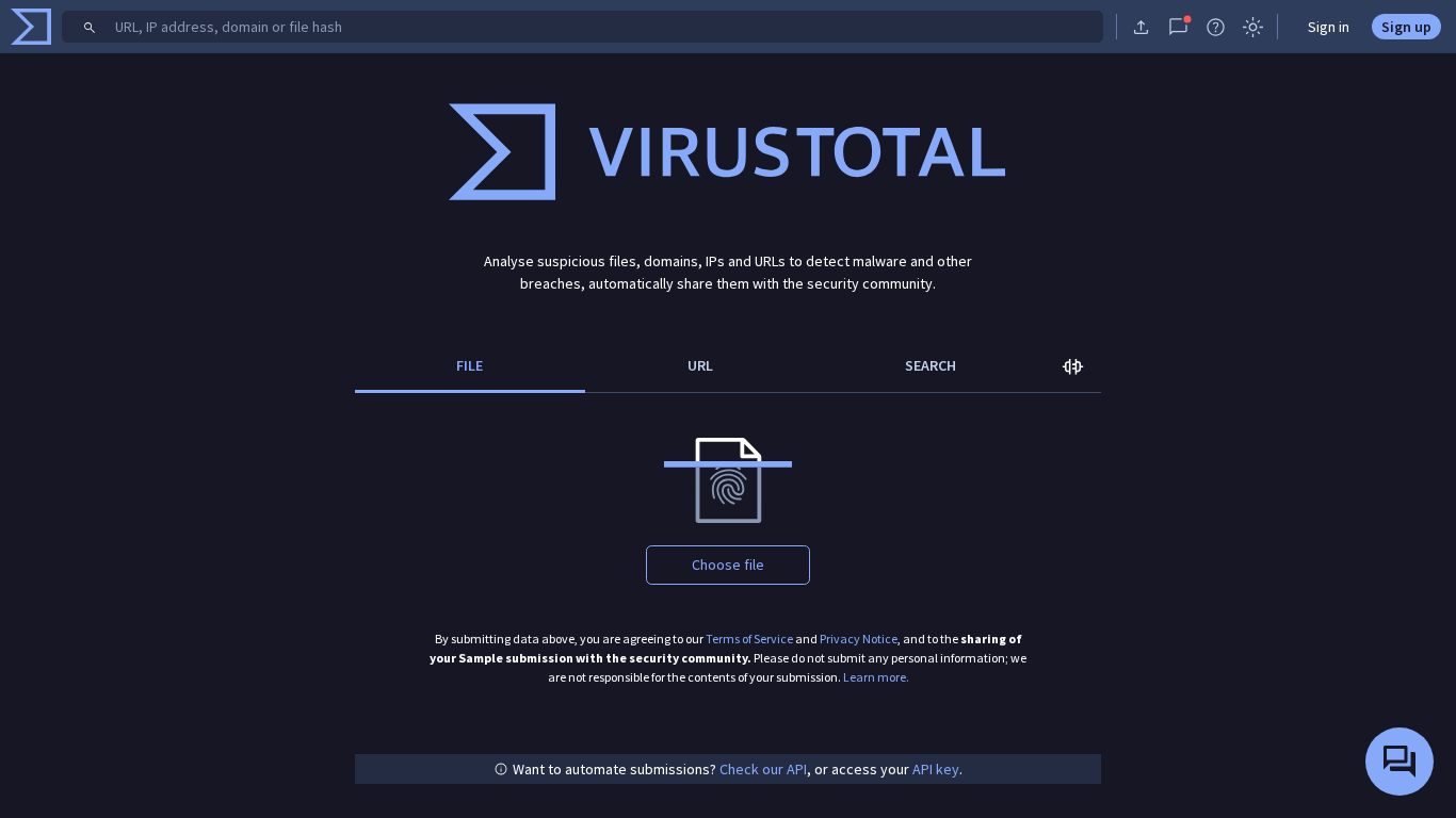 | AI-анализ | tld: .by The web project "VirusTotal - Home" is a website identified with the .BY top-level domain, belonging to the domain "virustotal.com". The title and description of the website are "VirusTotal" and "VirusTotal", respectively. The keywords associated with this webpage are not provided in the given data. The top words, however, suggest that the website is requesting the user to enable JavaScript to view its content. The fragment of the URL indicates that the homepage of this website is being accessed. |