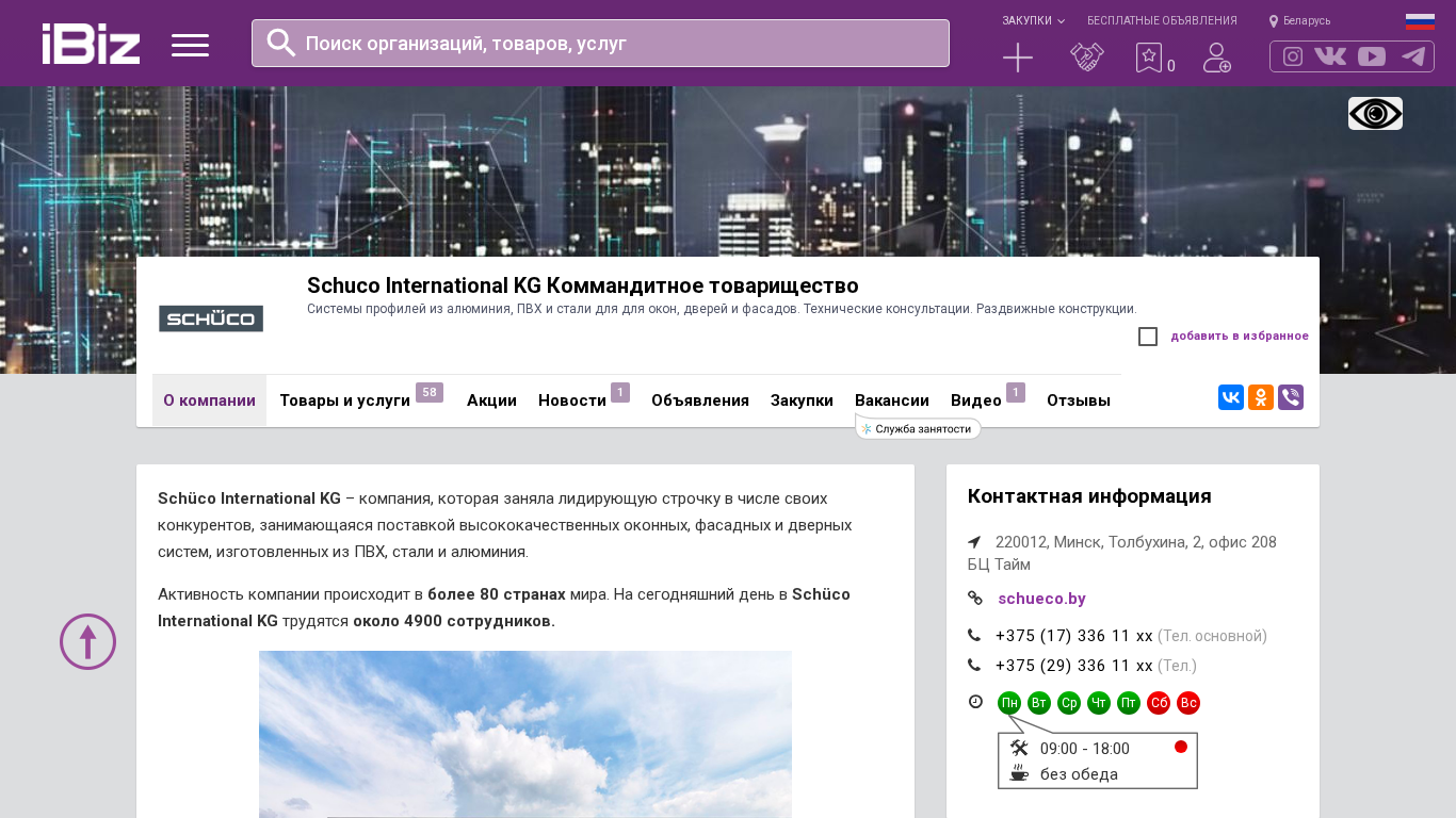 | Название / Заголовок | Schuco International KG Коммандитное товарищество - Системы профилей из алюминия, ПВХ и стали для для окон, дверей и фасадов. Технические консультации. Раздвижные конструкции.. 220012, Минск, Толбухина, 2, офис 208 БЦ Тайм |