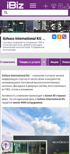 | AI-анализ | The website is for Schuco International KG, a commandite partnership based in Minsk, Belarus. They provide aluminum, PVC, and steel profile systems for windows, doors, and facades, along with technical consultations and folding constructions. The address and contact details, including phone numbers, are provided on the website. Schuco International KG is a leading company in the industry, supplying high-quality window, facade, and door systems in over 80 countries worldwide. They employ approximately 4900 staff. The company's product range includes windows and fittings, doors and fittings, facades, folding systems, winter gardens, balconies, ventilation systems, safety systems, sun protection systems, automation systems for buildings, and surface coatings. Schuco International KG has over 12000 business partners. |