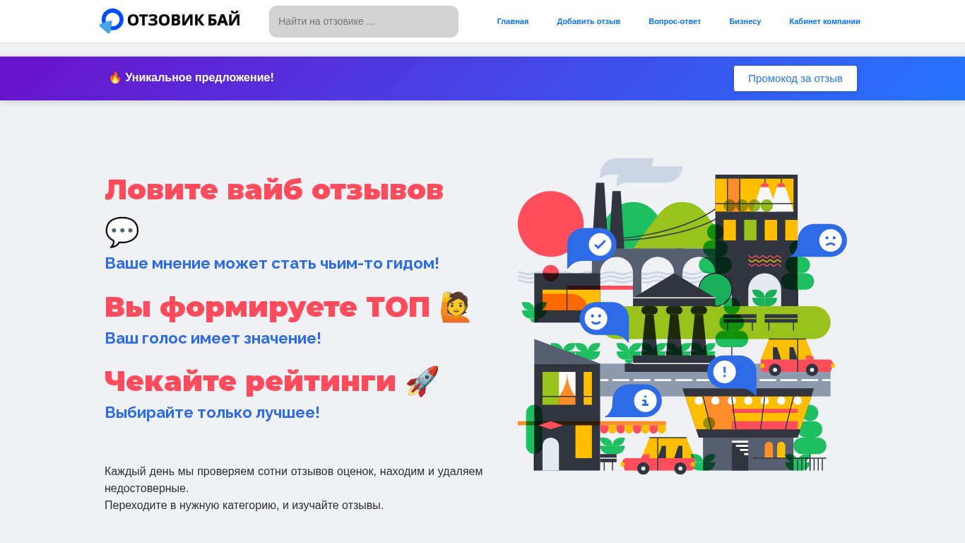 SEO-описание | Ловите вайб отзывов 💬 Ваше мнение может стать чьим-то гидом! Вы формируете ТОП 🙋 Ваш голос имеет значение! Чекайте рейтинги 🚀 Выбирайте только лучшее! Каждый день мы проверяем сотни отзывов оценок, находим и удаляем недостоверные. Переходите в нужную категорию, и изучайте отзывы. Каждый день мы проверяем сотни отзывов оценок, находим и удаляем недостоверные. Переходите в |