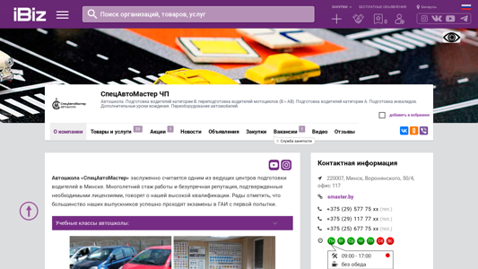 Название / Заголовок | СпецАвтоМастер ЧП - Автошкола. Подготовка водителей категории В. переподготовка водителей мотоциклов (B > AB). Подготовка водителей категории А. Подготовка инвалидов. Дополнительные уроки вождения. Переоборудование автомобилей.. 220007, Минск, , Воронянского, 50/4, офис 117 |