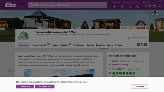 Название / Заголовок | Плешевичи База отдыха ЗАО 1 Мая - База отдыха Плешевичи. Снять домик для отдыха на берегу озера. Аренда домика с мангалом и беседкой.. 222635, , Плешевичи д. |