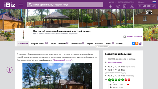 Название / Заголовок | Охотничий комплекс Борисовский опытный лесхоз - Аренда охотничьего комплекса. Организация охоты. Услуги егеря.. 223038, , Селец д. |