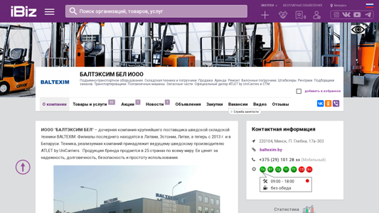 Название / Заголовок | БАЛТЭКСИМ БЕЛ ИООО - Подъемно-транспортное оборудование. Складская техника и погрузчики. Продажа. Аренда. Ремонт. Вилочные погрузчики. Штабелеры. Ричтраки. Подборщики заказов. Транспортировщики. Поломоечные машины. Запасные части. Официальный дилер ATLET by UniCarries и СТМ.. 220104, Минск, , П. Глебки, 17а-303 |