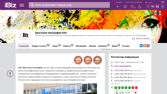 Название / Заголовок | Брестская типография ОАО - Полный спектр полиграфических услуг. Разработка дизайна электронных оригинал-макетов любой сложности. Производство и доставка готовой продукции.. 224013, Брест, , Машерова пр-т, 75Б |