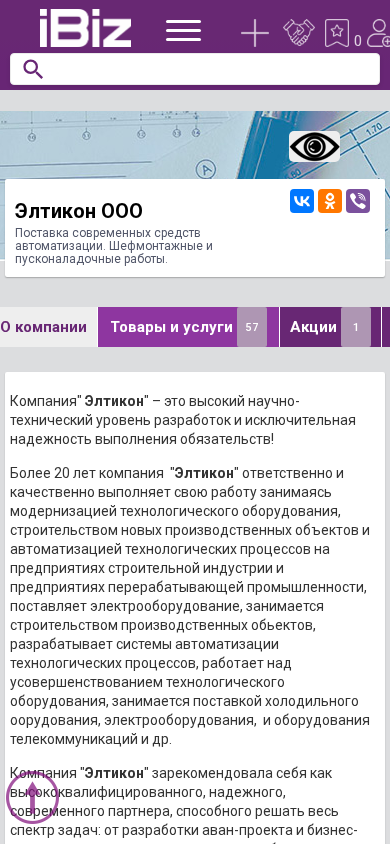 Название / Заголовок | Элтикон ООО - Поставка современных средств автоматизации. Шефмонтажные и пусконаладочные работы.. 220125, Минск, , Острошицкая, 2А |