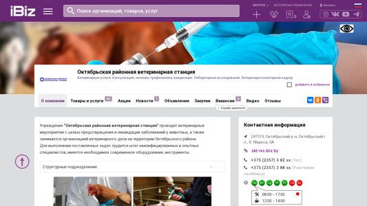 Название / Заголовок | Октябрьская районная ветеринарная станция - Ветеринарные услуги. Консультация, лечение, профилактика, вакцинация. Лабораторные исследования. Ветеринарно-санитарный надзор.. 247319, , Октябрьский г. п., К. Маркса, 5А |