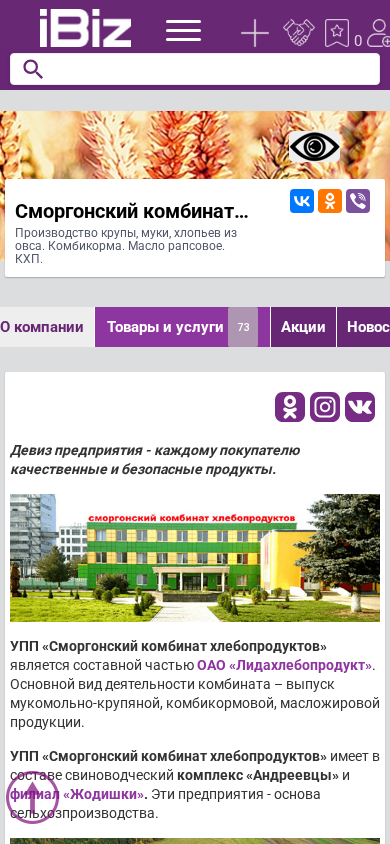 favicon Сморгонский комбинат хлебопродуктов УП - Производство крупы, муки, хлопьев из овса. Комбикорма. Масло рапсовое. КХП.. 231042, Сморгонь, , Комсомольский пер., 20