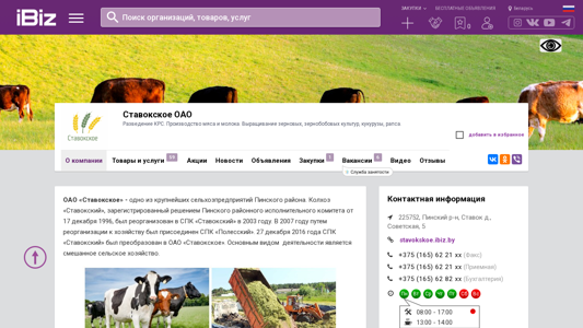 favicon Ставокское ОАО - Разведение КРС. Производство мяса и молока. Выращивание зерновых, зернобобовых культур, кукурузы, рапса.. 225752, , Ставок д., Советская, 5