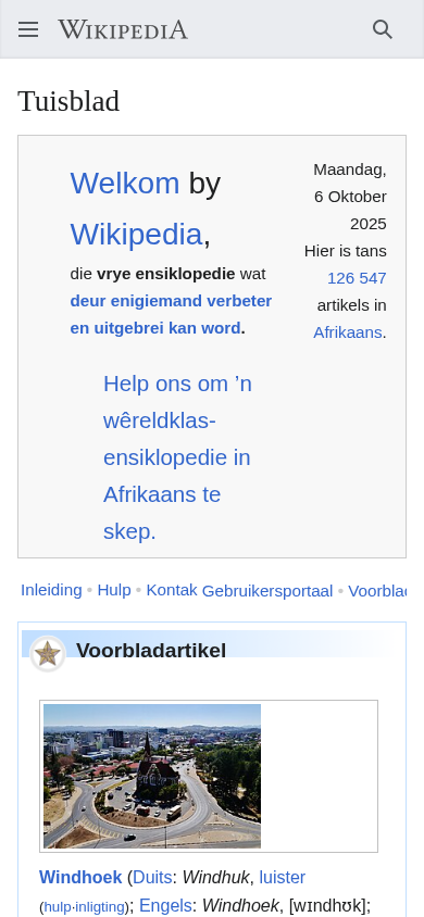 | Canonical URL | https://af.wikipedia.org/wiki/Tuisblad |