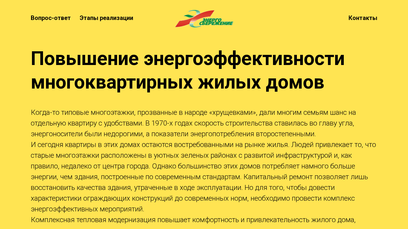 SEO-описание | После проведения энергоэффективных мероприятий в доме значительно улучшаются условия проживания и его эстетический вид, что приводит к росту рыночной стоимости квартир на 20%. |