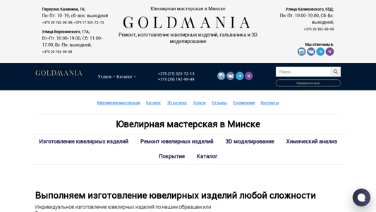 Название / Заголовок | Ювелирная мастерская в Минске, цены ювелирной мастерской Goldmania |
