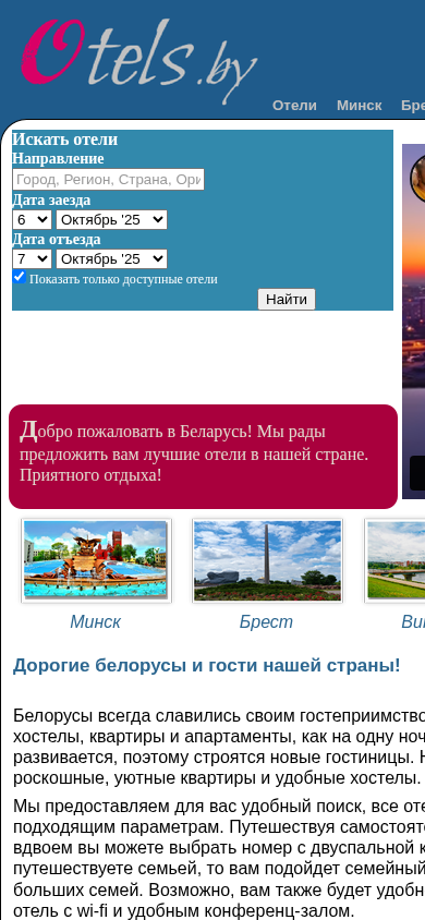 SEO-описание | Лучшие гостиницы, отели, квартиры в Беларуси и всей Европе. Хорошие отели и гостиницы в Минке, Бресте, Гомеле, Могилеве, Витебске, Гродно. Бронирование отеля и гостиницы онлайн. Путешествовать с нами легко! |