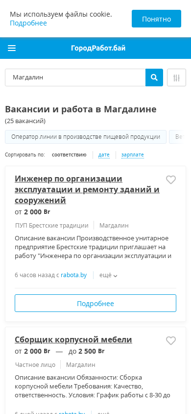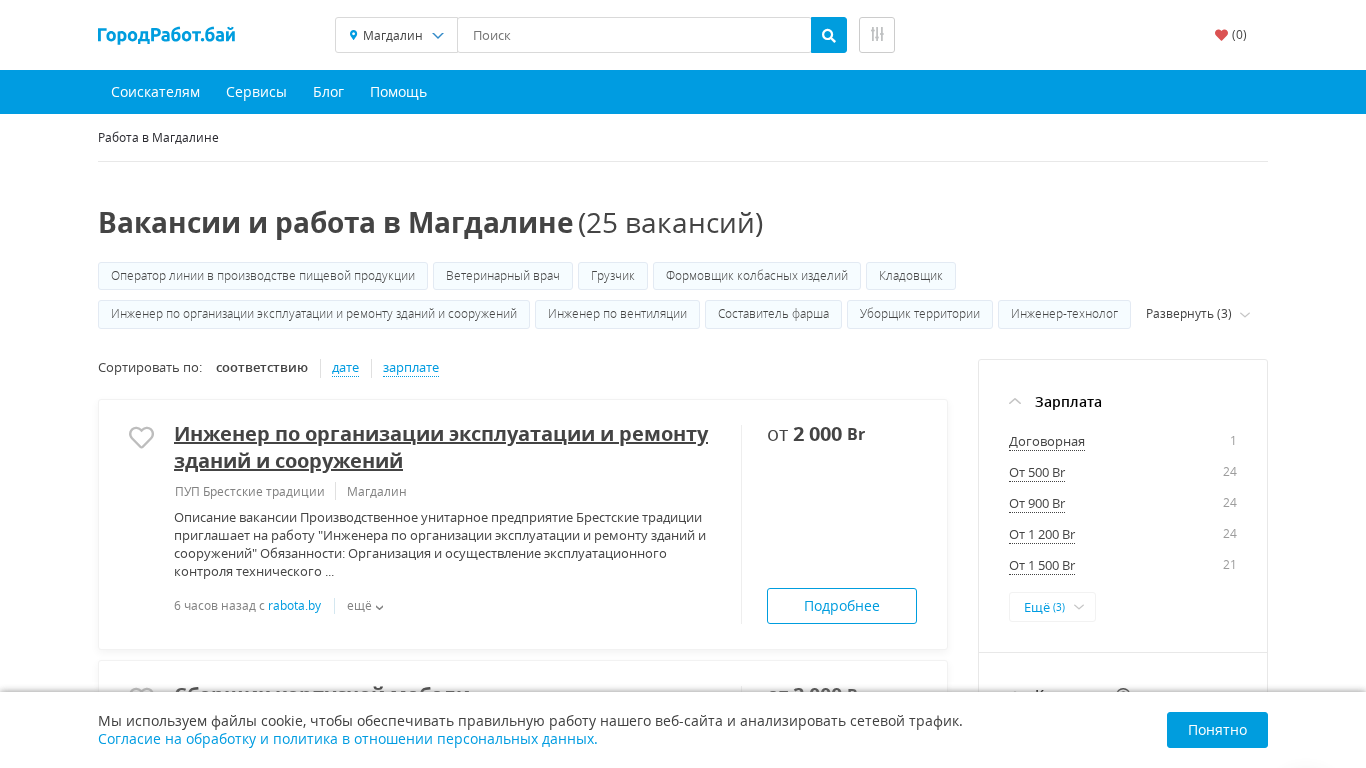 SEO-описание | Ищете работу в Магдалине? На нашем сайте Вы найдете более 25 свежих вакансий от прямых работодателей. Быстрый и удобный поиск вакансий с ГородРабот.бай |