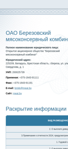Название / ЗаголовокБерезовский мясоконсервный комбинат ОАО