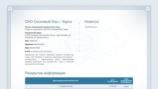 Название / Заголовок | Сосновый бор г. Чаусы ОАО |