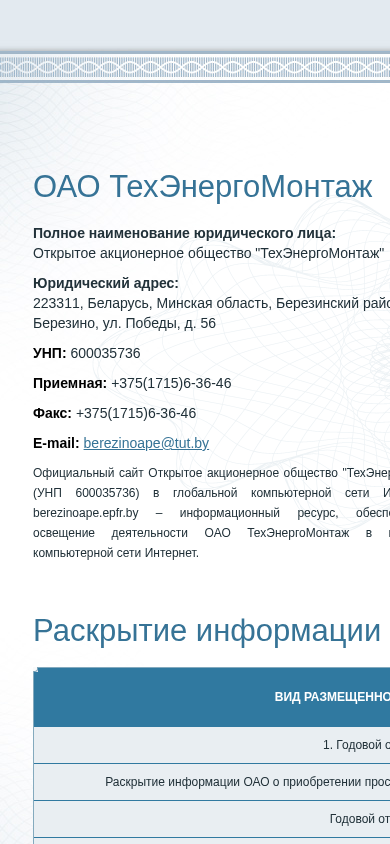 SEO-лексика | техэнергомонтаж оао скачать информации пароль e-mail годовой отчет открытое акционерное общество адрес унп 600035736 375 1715 6-36-46 berezinoape глобальной компьютерной |