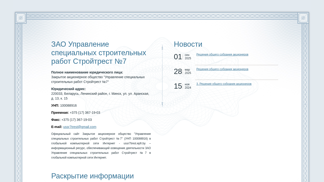 Сайт: ussr7trest.epfr.by — HTTP 200 (OK)