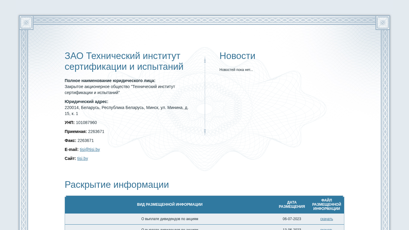 Название / Заголовок | Технический институт сертификации и испытаний ЗАО |