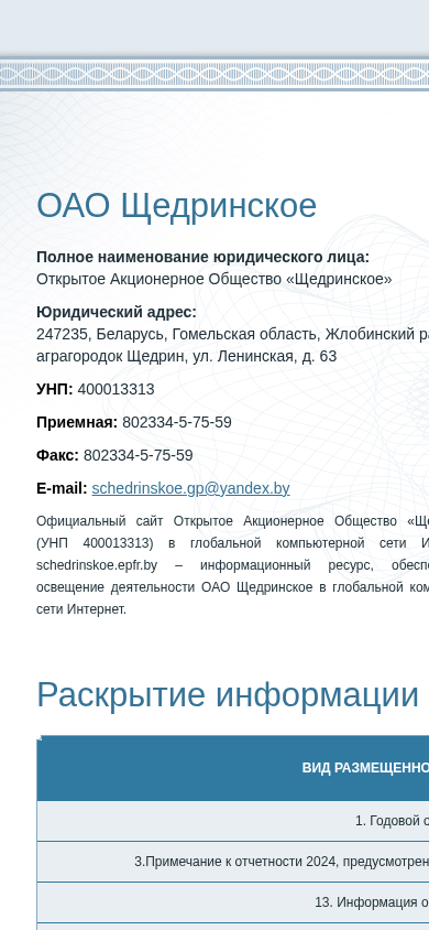 SEO-лексика | скачать годовой отчет щедринское оао пароль e-mail информации открытое акционерное общество адрес беларусь унп 400013313 802334-5-75-59 schedrinskoe глобальной компьютерной сети |