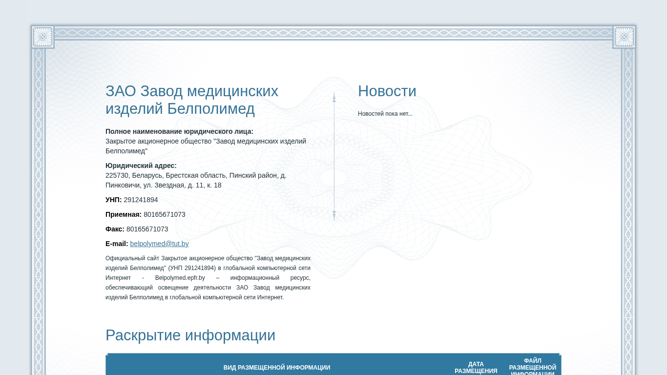 Название / Заголовок | Завод медицинских изделий Белполимед ЗАО |