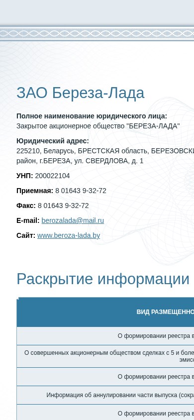 Сайт: beroza-lada.epfr.by — HTTP 200 (OK)