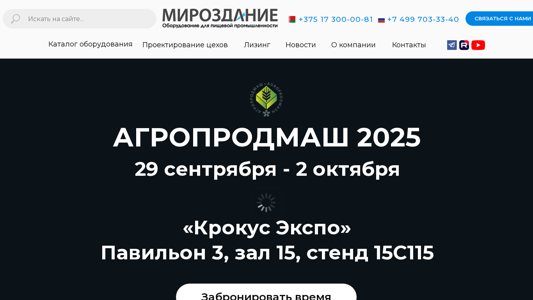 Название / Заголовок | Мироздание — поставщик оборудования для пищевых производств |