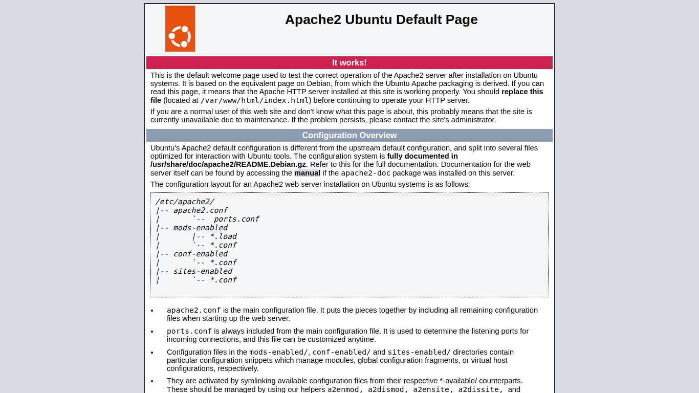 Название / Заголовок | Apache2 Ubuntu Default Page: It works |
