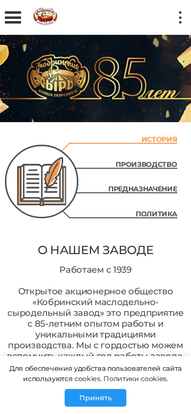 SEO-описание | "Официальный сайт ОАО «Кобринский МСЗ» - производителя качественных сыров и молочной продукции. Вся информация о компании и продукции. |