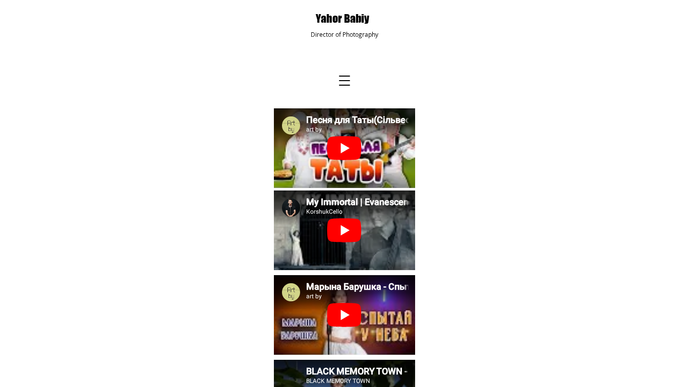 | AI-анализ | This website, titled "FEATURED | DOP" and described with keywords such as "Detskaya fotografiya" (Children's photography), "Semeynaya fotografiya" (Family photography), "Fotografiya" (Photography), "svadebnaia fotografiya" (Wedding photography), "sjemka koncertov i meropriyatii" (Concert and event photography), belongs to Yahor Babiy, a Director of Photography. The top of the page introduces "Yahor Babiy Director of Photography" and offers a link to "основному контенту" (main content). The main content showcases "Featured Work," which includes "Concert," "Drone," "Interview," "Doc," and "Studio" projects. Additionally, there are 14 "W |