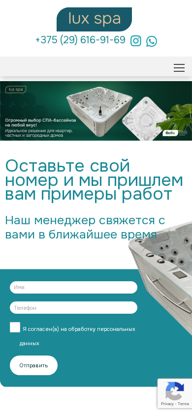 SEO-описание | Интернет магазин LUXSPA.BY гидромассажных СПА- бассейнов ➤ Все вопросы на: info@luxspa.by 📨 Звоните +375 29 106-55-99 🕿 Бесплатная доставка по Беларуси. |