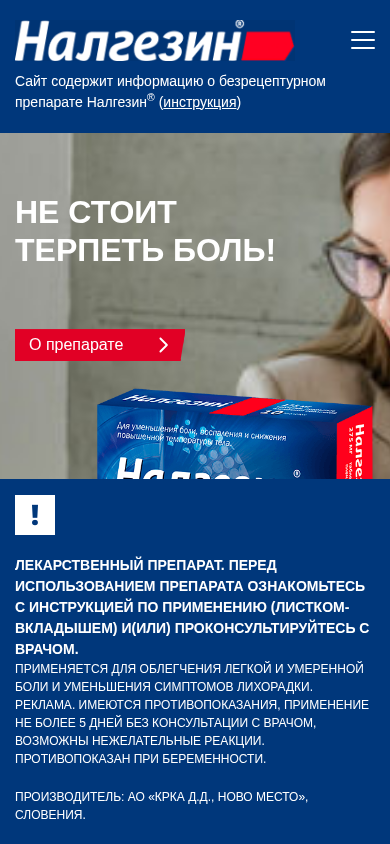 Название / Заголовок | Не стоит терпеть боль! Налгезин® облегчает боль | Налгезин® |