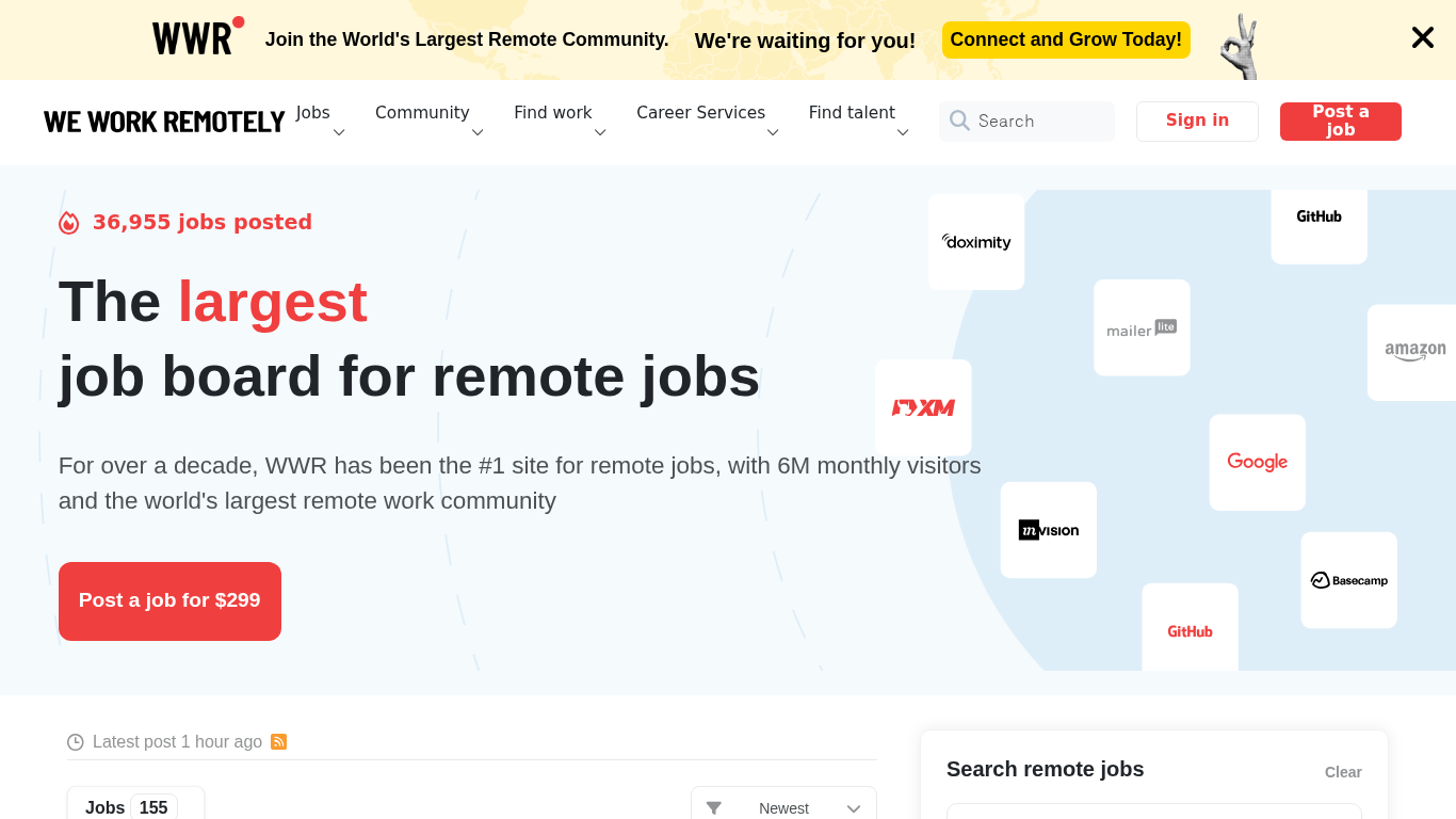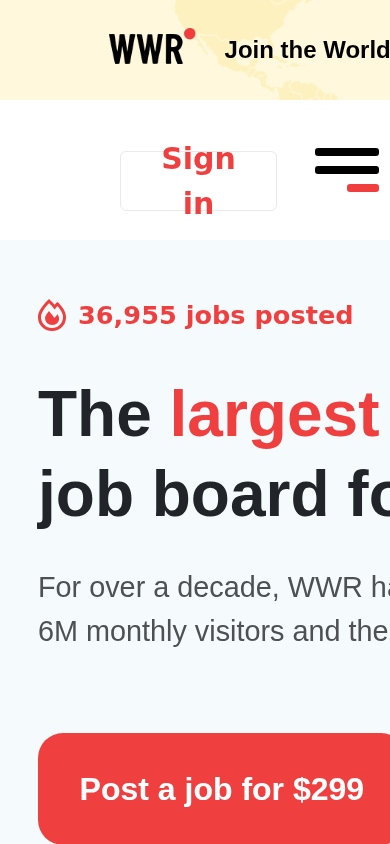 SEO-описание | Advanced job search for We Work Remotely, allowing you to search and refine jobs across programming, marketing, customer service, etc. Find your next remote career. |