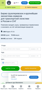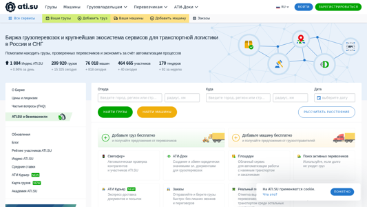SEO-описание | Биржа грузоперевозок ATI.SU. Перевозка и доставка груза по России, Европе и СНГ автотранспортом. Ежедневно: 150 000 грузов, 100 000 машин, 200 000 участников. Расчет расстояний автоперевозки, страхование грузов, тендеры, транспортные новости, логистический форум. |