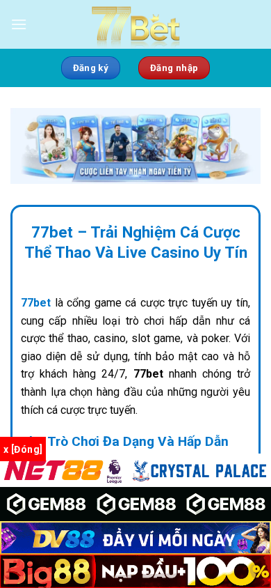 Название / Заголовок | 77bet - Trải Nghiệm Cá Cược Thể Thao Và Live Casino Uy Tín |