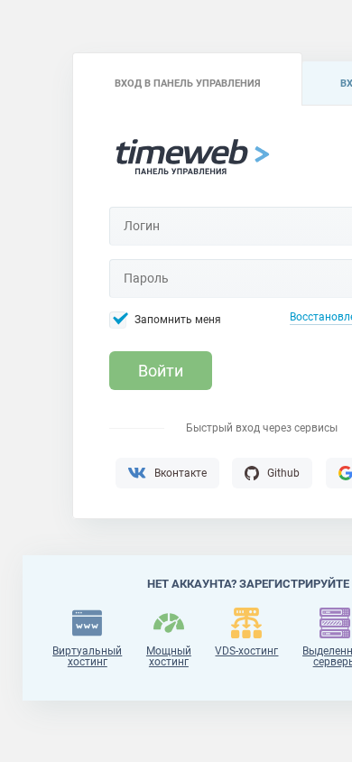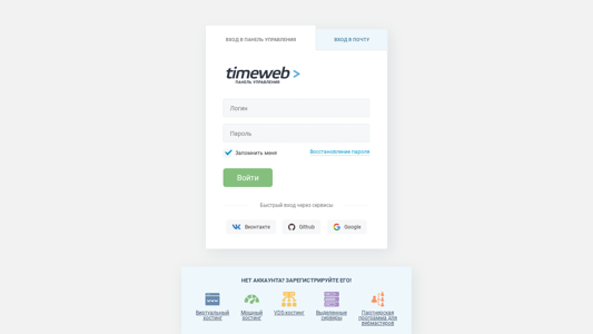 SEO-лексика | вход хостинг авторизация пользователя панель управления почту запомнить меня восстановление пароля войти быстрый через сервисы вконтакте github google нет аккаунта |