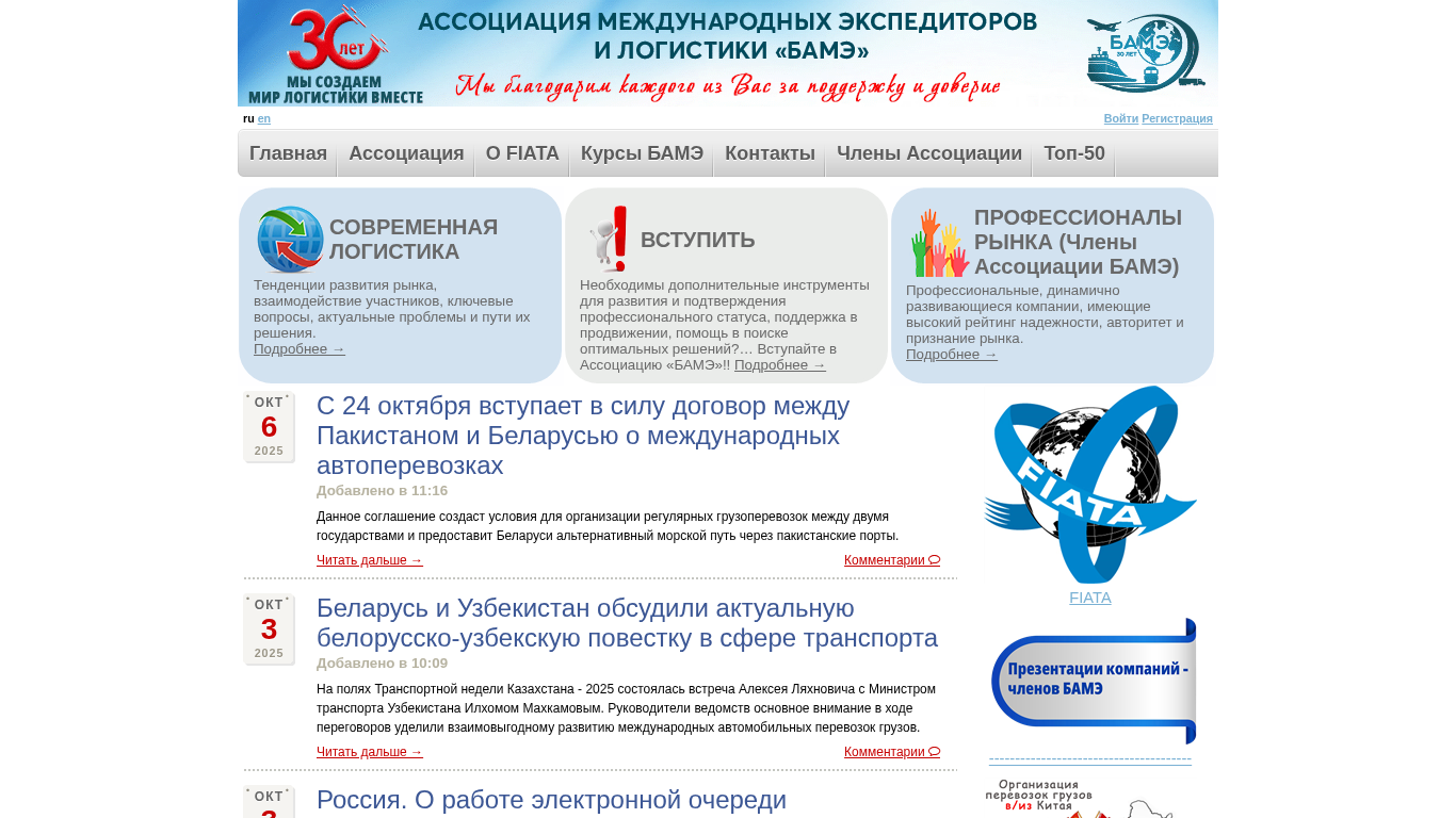 Название / Заголовок | Ассоциация Международных Экспедиторов и Логистики "БАМЭ" |